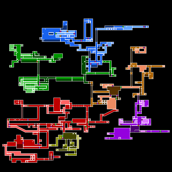 • Every Zebes room from the vanilla game is placed somewhere. Once all movement items are collected, it is possible to reach every room with only Basic tech.